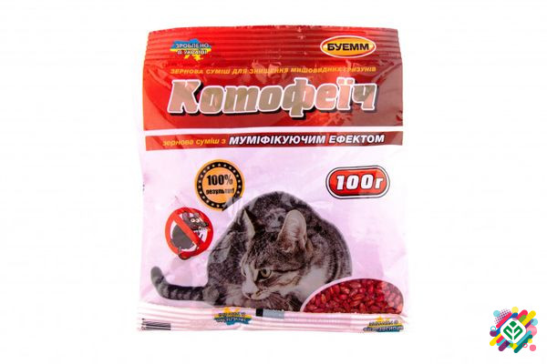 Мінімальна сума замовлення 350 грн. Упаковка: - 500 г зерно червоне - 100 г зерно червоне - 300 г дуплет зелений - 300 г дуплет червоний Зернова приманка проти кротів та мишей "Котофейч" з ароматизатором масляно-сирним. Ця зернова отрута використовується для знищення різних видів гризунів, схожих...