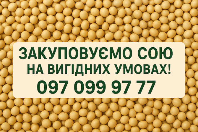 Закуповуємо сою на вигідних умовах Приймаємо сою: - з полів господарств; - з елеваторів; - на наших базах у Писарівці та Немирові. Оплата: готівкою або безготівково, у зручній для вас валюті. Чесні умови. Швидкі розрахунки. Постійне партнерство. Телефонуйте 0970999777