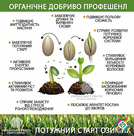 **Добриво "Українські гумати" PROFESSIONAL для Сільськогосподарських Культур** **Норма використання:** 0,15-0,2 літра на гектар. **Упаковки:** - 1 літр за 300 грн (достатньо для 5 гектарів) - 5 літрів за 1200 грн (достатньо для 25 гектарів) - 10 літрів за 2200 грн (достатньо для 50 гектарів) **Ос...