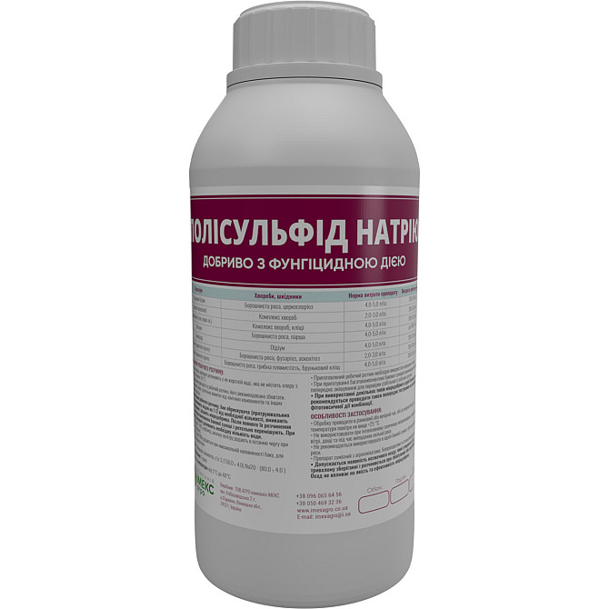 Полісульфід Натрію - це добриво в рідкій формі з фунгіцидною та акарицидною дією на основі сірки та натрію, для позакореневого підживлення рослин. Дія препарату: Полісульфід Натрію (сірка) діє як фунгіцид, тому ефективна проти таких хвороб як сіра гниль, борошниста роса та інші. Особливо важливу р...