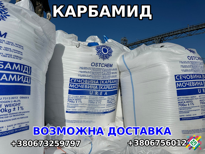 Продаємо карбамід (мочевина) у великотоннажних мішках по 700 кг. Карбамід (NH2CONH2) є одним з найпоширеніших добрив у світі, яке використовується для підживлення рослин. Він містить азот у формі, яка є доступною для рослин, і є важливим елементом у процесі фотосинтезу. Карбамід є водорозчинним добр...