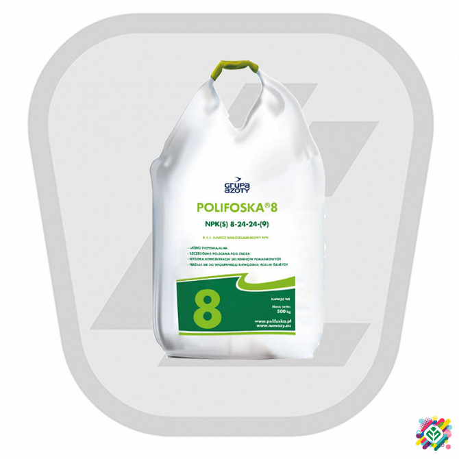 Поліфоска 8 NPK 8-24-24 (S) - 9 (POLIFOSKA 8) є ефективним добривом для будь-якої культури, оскільки містить рівномірне співвідношення фосфору до калію для забезпечення потужного проростання рослин. Рекомендується використовувати для всіх видів культур: озимих, ярих, технічних, кормових, бульбочних,...