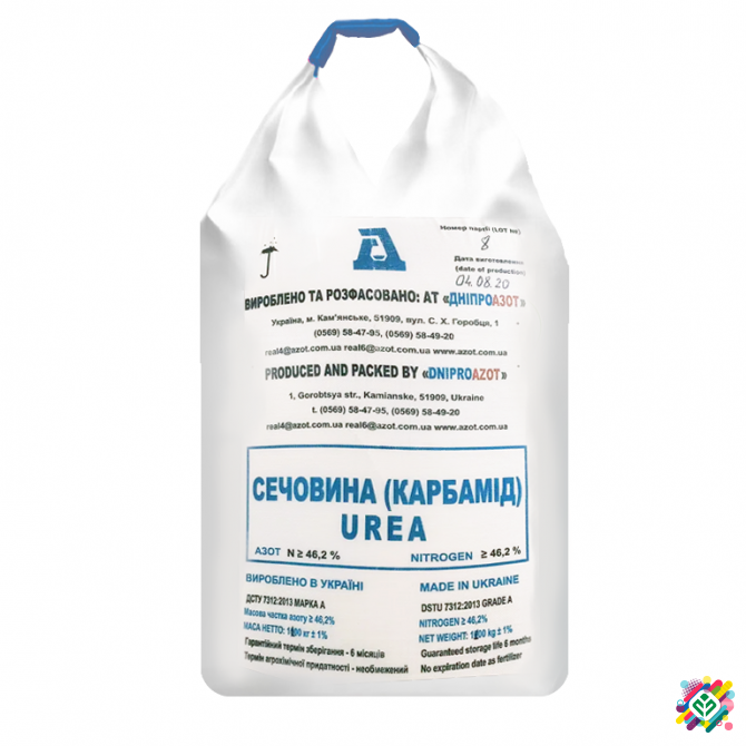 Мінімальна партія - 1 біг-бег (самовивіз) від 20т. - доставка безкоштовно в радіусі 150 км від Кропивницького. Карбамід N-46.2 (уреа) CO(NH2)2 - дрібнокристалічний продукт білого кольору, в складі якого міститься не менше 46% азоту. Рекомендується використовувати як добриво або підживлення для всіх ...