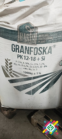 Мінеральне добриво Гранфоска 18-5+Si від виробника BASIS є складним добривом, яке містить азот (N), фосфор (P), калій (K) та кремній (Si). Покриваючи основні потреби рослин у поживних речовинах, воно також містить кальцій (Ca), магній (Mg) та сірку (S) у співвідношенні 18-5 (30-3-3). Крім того, в ск...