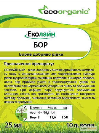 У нас в наявності вся лінійка мінеральних добрив Еколайн та інших виробників засобів захисту рослин. Звертайтеся, будемо раді вашому замовленню. Найновіша розробка - жидке борне мікродобриво, яке містить 3,5% азоту (N – NH2) та 8,0% бору (В). Це добриво має густоту 1,2 г/мл та рН 8,0. Це рідке бо...