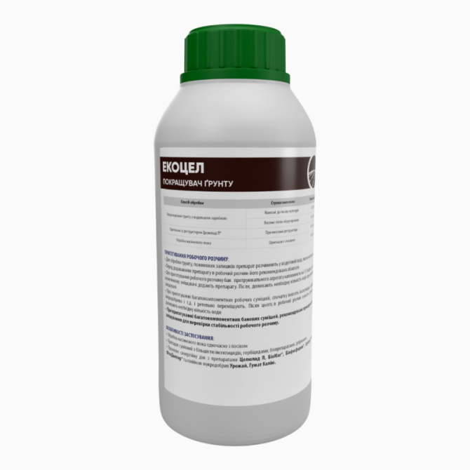 **Екоцел - біологічний препарат для покращення якості ґрунту** Екоцел - це біологічний препарат, який призначений для покращення мікробіологічного стану ґрунту, підвищення кількості доступних форм макро- та мікроелементів, стимуляції розвитку корисної мікрофлори та покращення структури ґрунту. Ек...