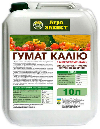 Гумат калію є водорозчинною калійною сіллю гумінової кислоти, яка є високоефективним стимулятором росту для всіх культур, незалежно від умов вирощування - як відкритого, так і закритого ґрунту. Цей препарат виробляється з леонардиту, містить не менше 10% гумінових кислот. Гумат калію сертифікований...