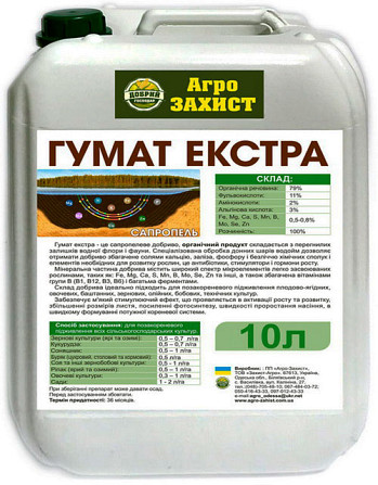 Пропонуємо вам ефективне концентроване добриво на основі сапропелю - Гумат-Екстра. Гумат Екстра виготовляється з перегнилих залишків водних рослин та тварин, які піддаються спеціалізованій обробці донних шарів водоймищ. Це добриво збагачене солями кальцію, заліза, фосфору та багатьма іншими хімічним...