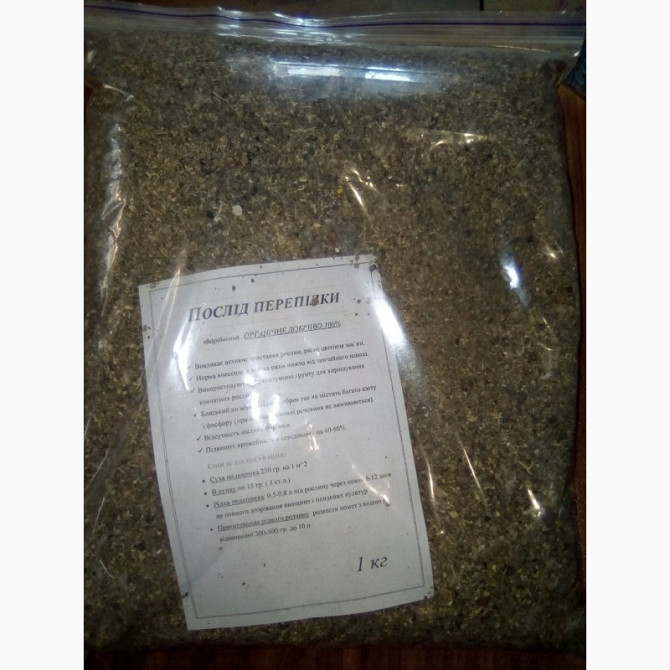 Перепелиний гній - універсальне добриво для всіх видів рослин, яке дуже просте в застосуванні та не має запаху. Фасування - по 1 кг. Відправка можлива через "Нову Пошту" або "Укрпошту". Перепелиний гній є відмінним джерелом органічних речовин, які сприяють росту рослин, покращують структуру ґрунту...