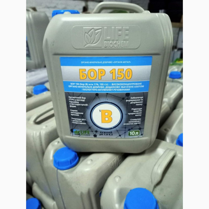 **БОР 150 LF (бор 11%) (лужний)** - ВИСОКОКОНЦЕНТРОВАНЕ ОРГАНО-МІНЕРАЛЬНЕ ДОБРИВО У ВИГЛЯДІ КОЛАМІНУ, ДОДАТКОВО ЗБАГАЧЕНЕ АЗОТОМ І БІОЛОГІЧНО-АКТИВНИМИ РЕЧОВИНАМИ. **Склад:** - Бор (В) w/w 11% - Азот (N) 7,5% - Біологічно-активні речовини 20% - pH 7,8 - 8,2% **Тара:** каністра 10л, ціна вказана за...