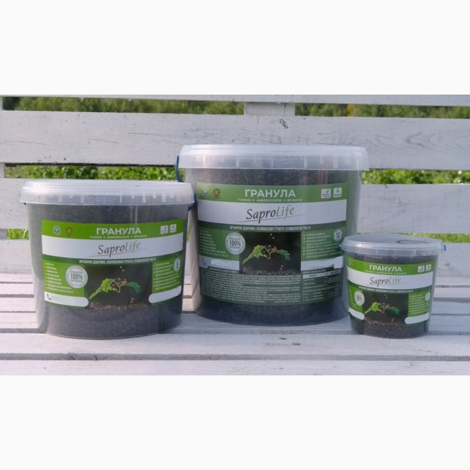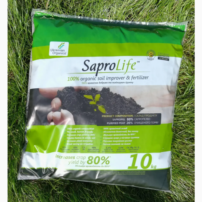 Гранульоване органічне добриво виготовлене із цільного сапропелю, до складу якого входять природні органічні сполуки, а також мезо-та мікроелементи. Це добриво має назву "Сапропель-Гро". Сапропель-Гро використовується для органічного живлення рослин, активації процесів ґрунтоутворення, покращення ...