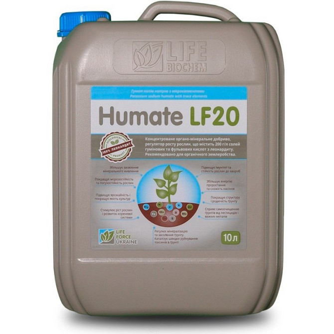 **Гумат калію/натрію з мікроелементами Humate LF20** Гумат ЛФ 20 (Humate LF 20) - це концентроване органо-мінеральне добриво, що є стимулятором росту рослин та кондиціонером ґрунту на основі гумінових кислот, одержаних з високоякісного леонардиту. **Як працює Humate LF20?** Завдяки високому вміст...