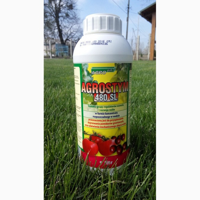 **AGROSTYM 480 SL (Агростим)** - це регулятор росту і розвитку рослин у концентрованій формі розчину, який сприяє прискоренню дозрівання та поліпшенню окраски яблук і помідорів. AGROSTYM 480 SL - це новий продукт на ринку, перший польський препарат, що містить ефірон, який прискорює дозрівання плод...