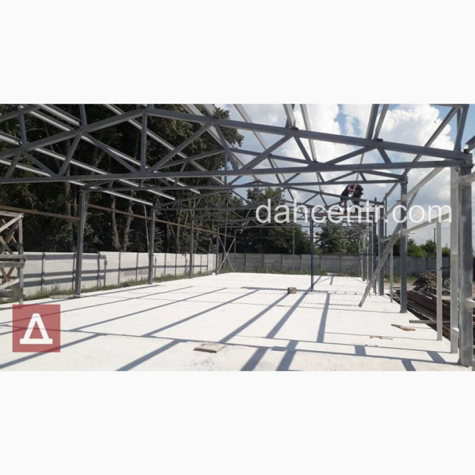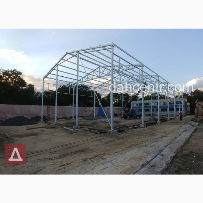 Металевий каркас-ангар для будівництва промислових та комерційних будівель будь-якого призначення, від компанії "Дахцентр". Технічні характеристики: - Розміри по осях: - Ширина – 18м - Довжина – 24м - Корисна висота – 4м - Площа - 432 м² Вартість: 611 280 грн. Ціна за м²: 1 415 грн. Карк...