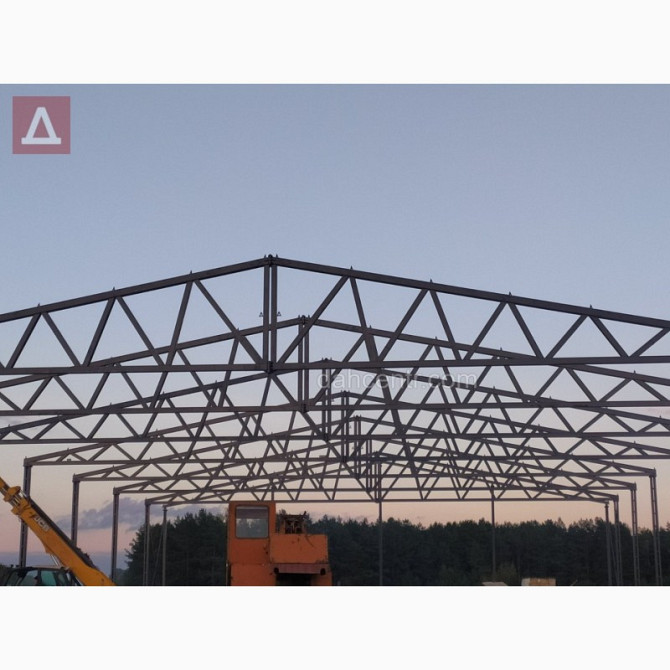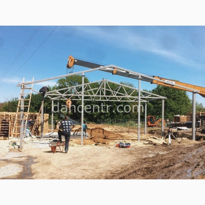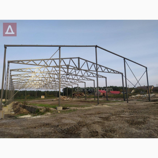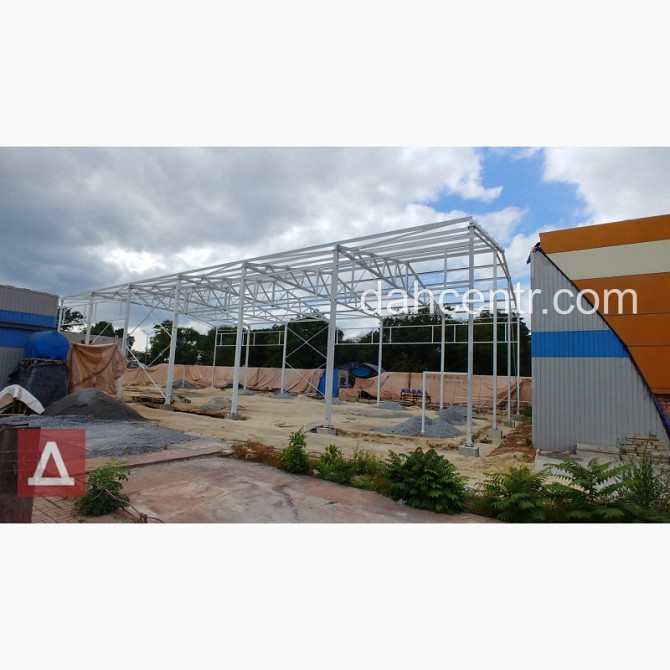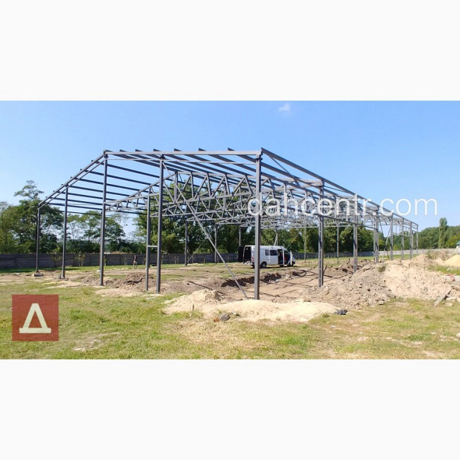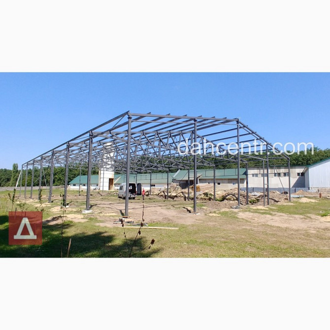 Прямокутний металевий каркас для будівництва ангарів та комерційних будівель будь-якого призначення, від компанії "Дахцентр". Технічні характеристики: - Розміри по осях: - Ширина – 12 м - Довжина – 46 м - Корисна висота – 4 м - Площа – 432 м² - Виготовлення каркасу з нового металу, зокрема...