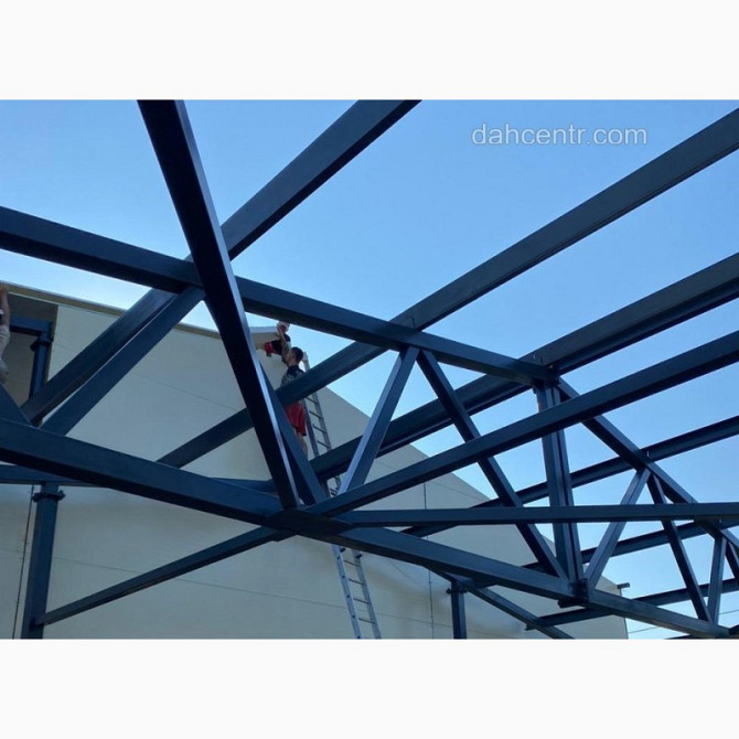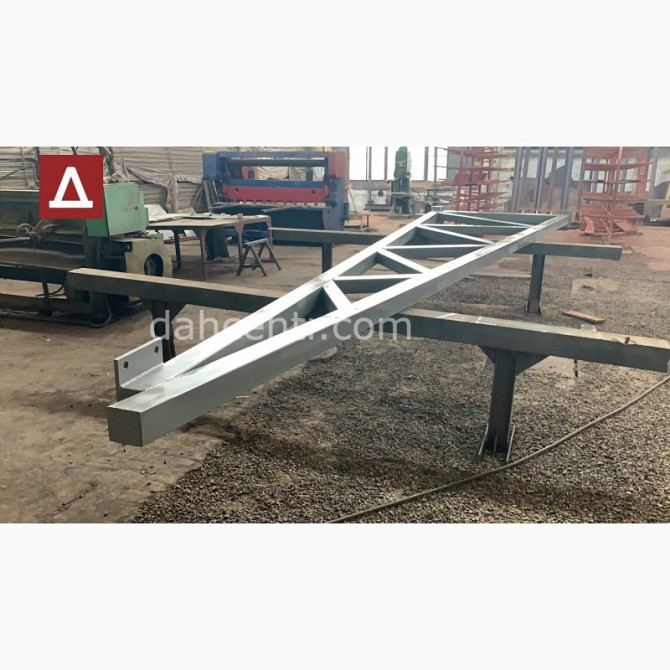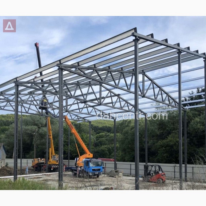 Розміри та Технічні Характеристики Металевої Каркасної Конструкції для Будівельних Потреб Увага! Пропонуємо вашій увазі металеву каркасну конструкцію від компанії "Дахцентр", яка виробляється з нового сертифікованого металу, а саме з квадратних профільних труб. Характеристики: - Розміри по осях: ...