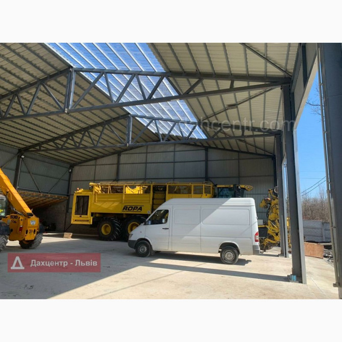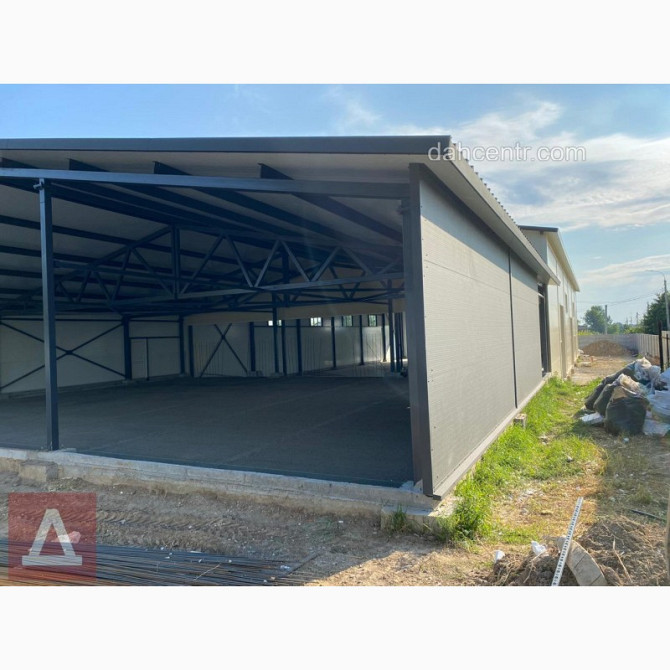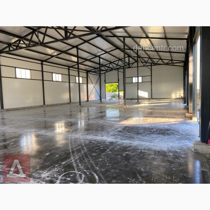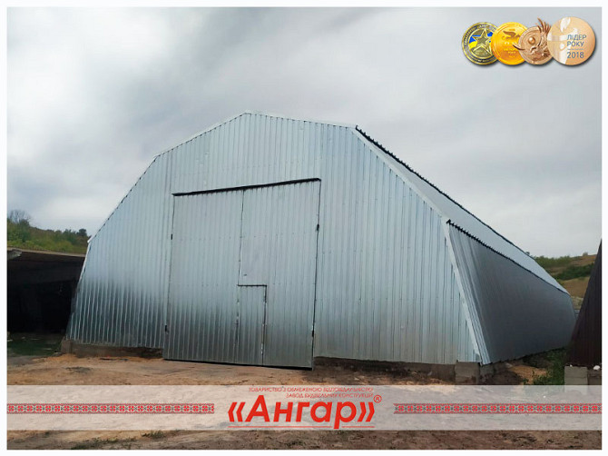 Ангар односкатний з нового матеріалу, призначений для різних видів діяльності. Його розміри: ширина - 16 м, довжина - 24 м, висота - 5 м, загальна площа - 384 кв. м. Загальна вартість складає 560 640 грн, ціна за 1 м² - 1 460 грн. Ціна включає в себе витрати на транспортування та технічні висновки а...