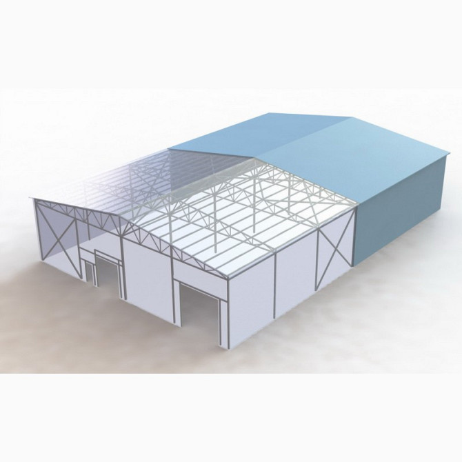 Прямокутний каркасний ангар для будівництва складів/комерційних/промислових будівель будь-якого призначення від компанії "Дахцентр" Технічні характеристики: - Розміри по осях: - Ширина – 18 метрів - Довжина – 42 метри - Корисна висота – 5 метрів - Площа - 756 квадратних метрів Цінова проп...